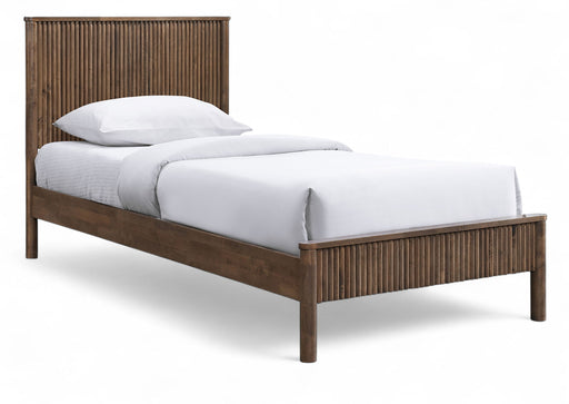 In stockThe sturdy Kivo solid wood bed in a rich finish brings timeless warmth to your bedroom. Vertical slatted detailing across the headboard and footboa...